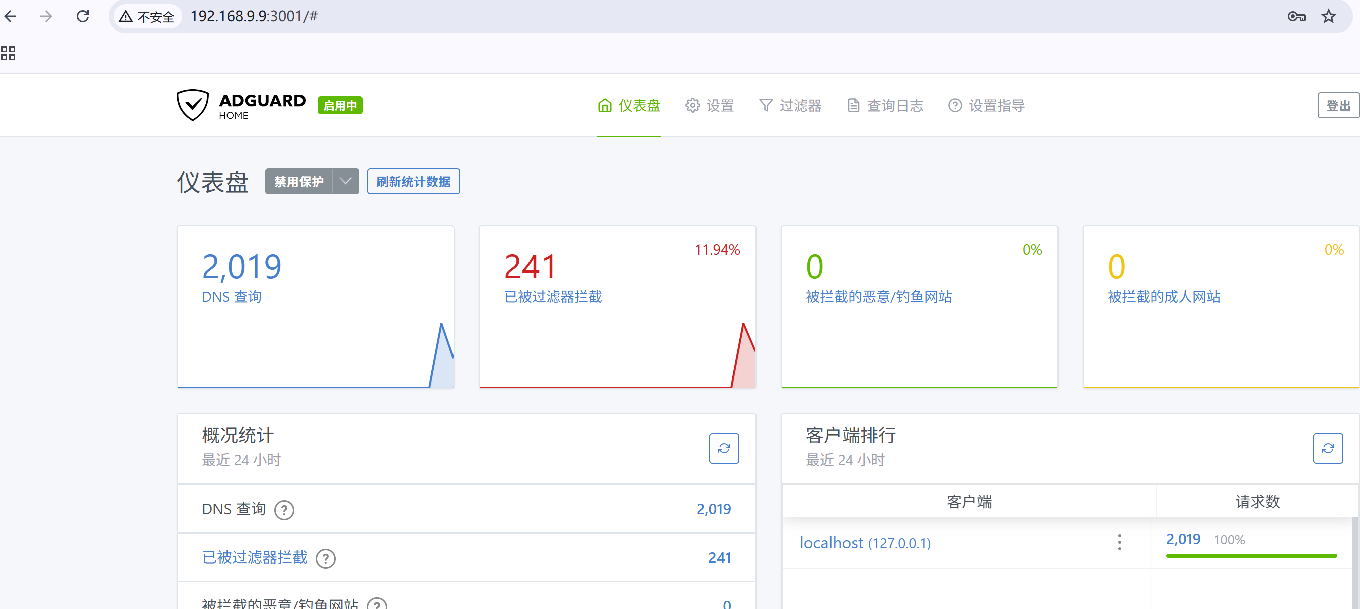 Now you can open the browser and navigate to http://127.0.0.1:3000/ to control your AdGuard Home service.