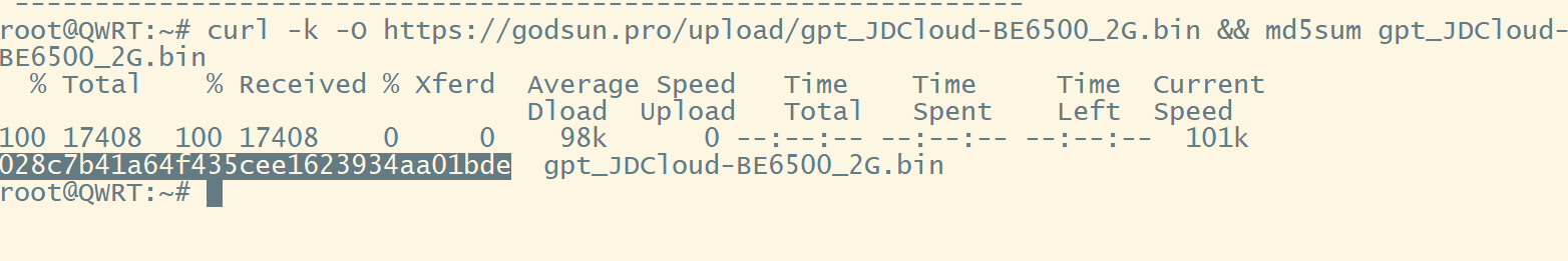 curl -k -O https://godsun.pro/upload/gpt_JDCloud-BE6500_2G.bin && md5sum gpt_JDCloud-BE6500_2G.bin