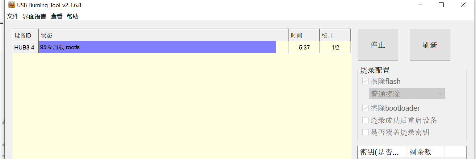 刷机没啥难度的了 ,先打开刷机软件,选入要刷的固件,点开始再去接上USB,然后插电就会显示刷机状态了,!没刷过机的就要按上面短接在通电!! 玩客云这个挺好基本都是直接线刷的固件