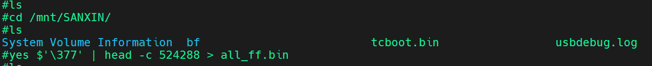 然后正式写入 uboot 文件不改命是 tcboot.bin 如果改了 你就按你改的来修改指令