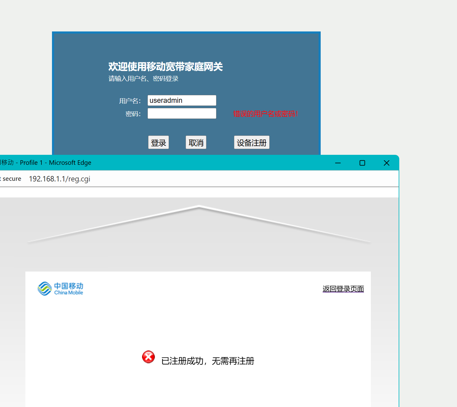cfgcli -s InternetGatewayDevice.DeviceInfo.X_CT-COM_TeleComAccount.UserName CMCCAdmin (修改超级用户为CMCCAdmin)