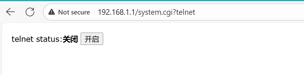 在超级用户的状态下访问 http://192.168.1.1/system.cgi?telnet 开启telnet功能