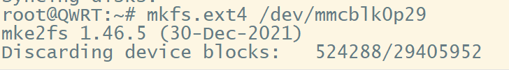mkfs.ext4 /dev/mmcblk0p29 # 格式29分区成ext4分区