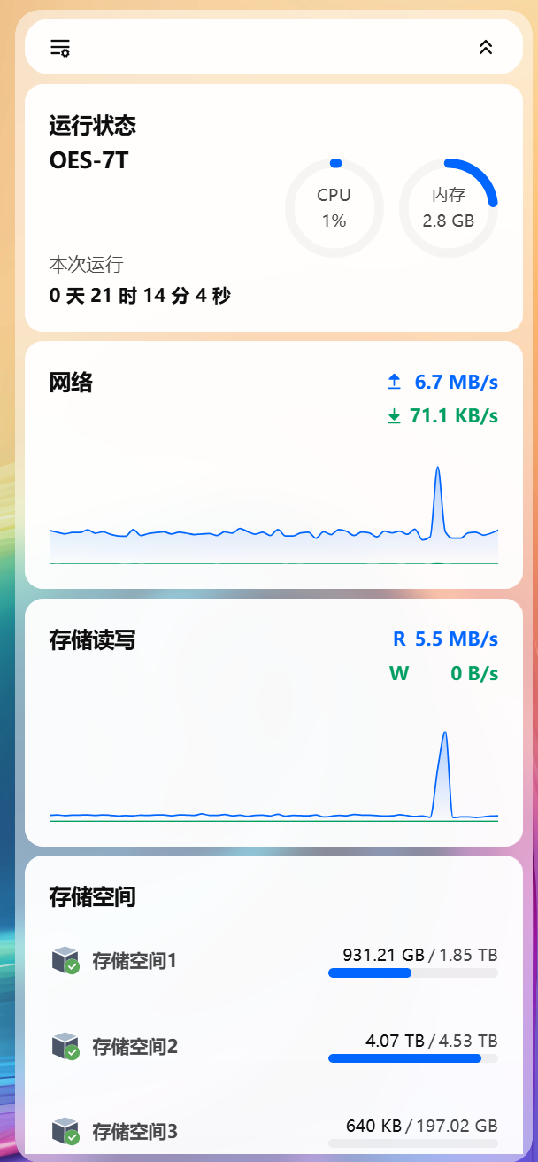 我这里装了2块ssd 1T在机内,一块5T的 移动硬盘 拆掉了外壳,直接接sata但是太厚了 只能引线出来放外面。。。